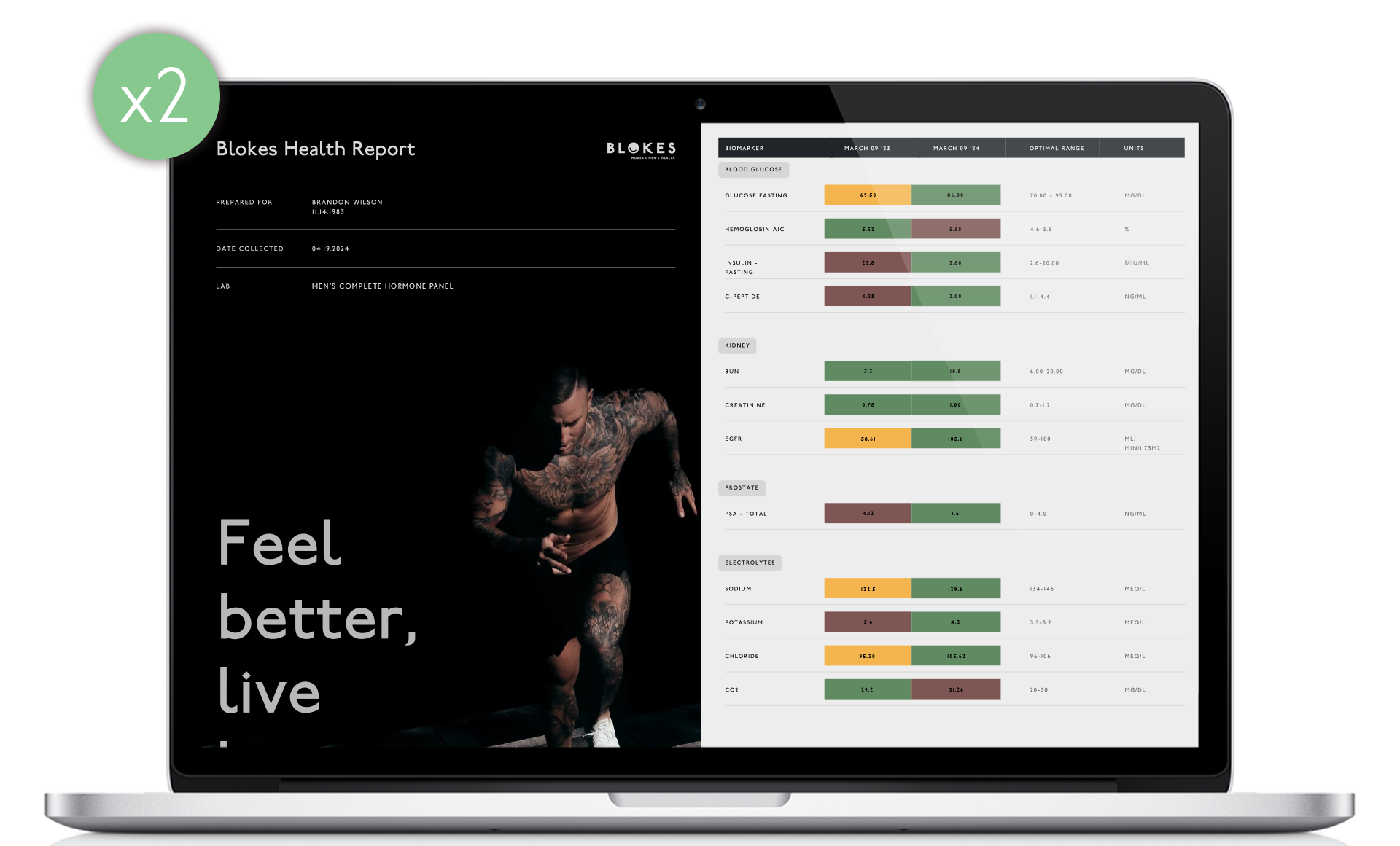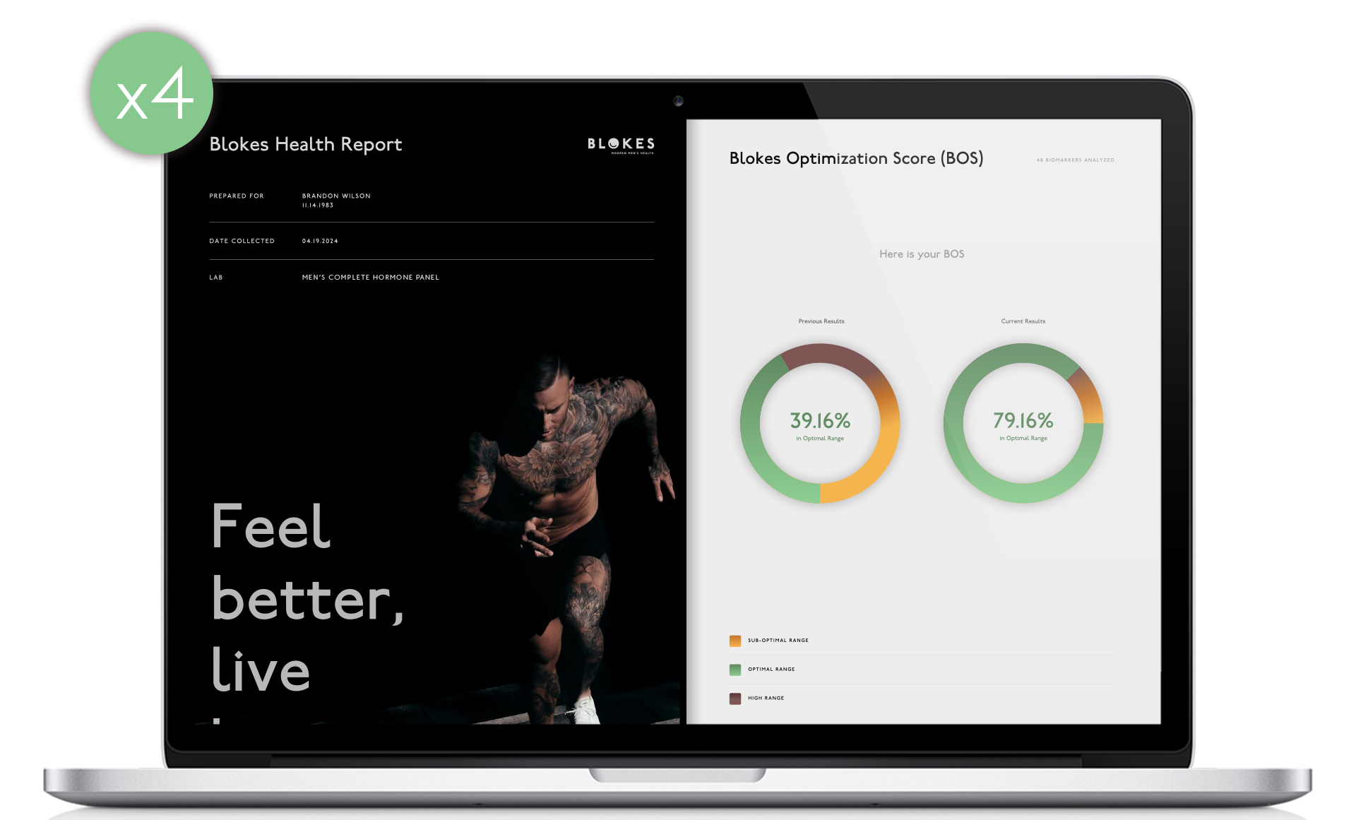 With Blokes, it’s not just about the test results. We go a step further and prescribe customized supplements based on any deficiencies. Not only do men see their biomarkers improve, but they also know they’re taking exactly what their body needs for enhanced performance and a better daily life.